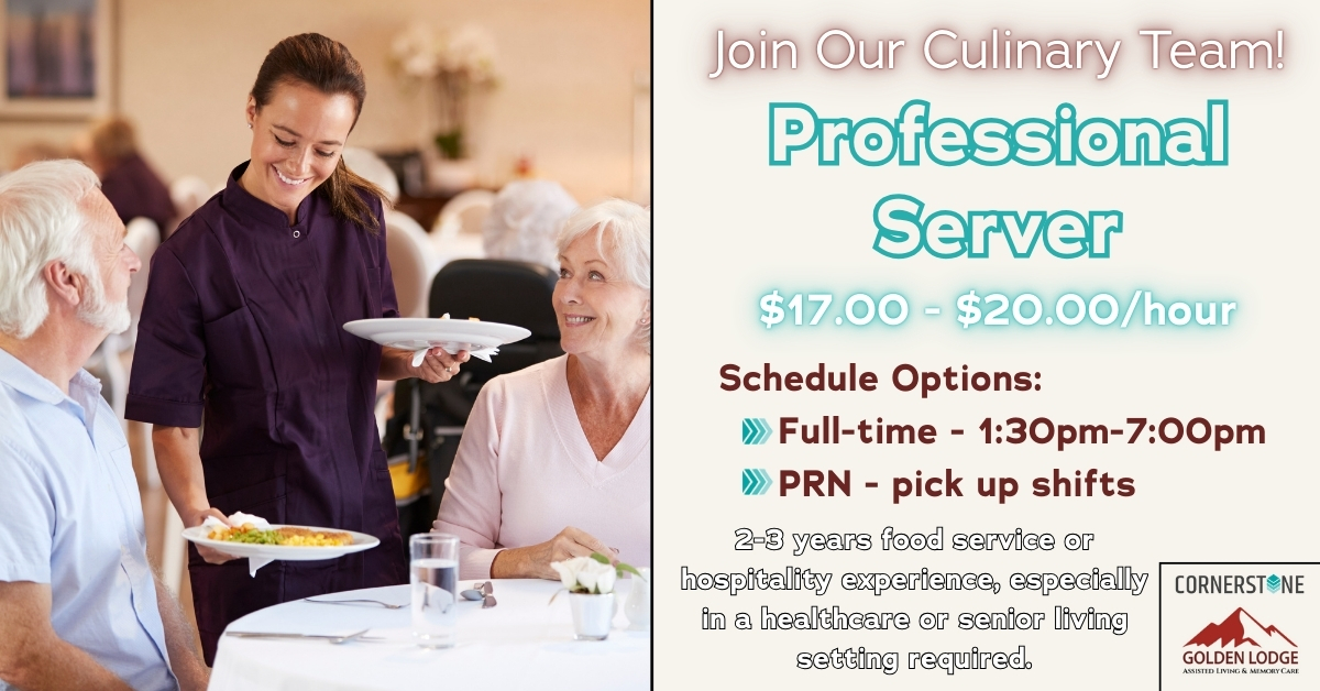 Start a new career as a Professional Server at Golden Lodge Assisted Living & Memory Care!